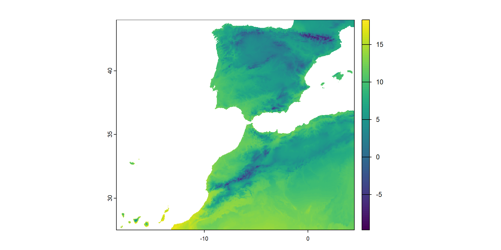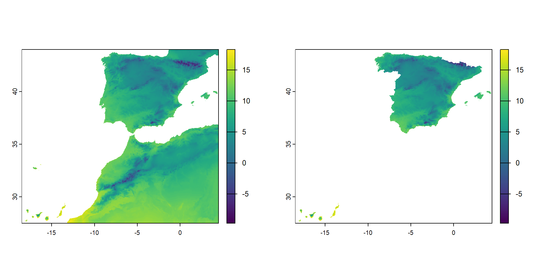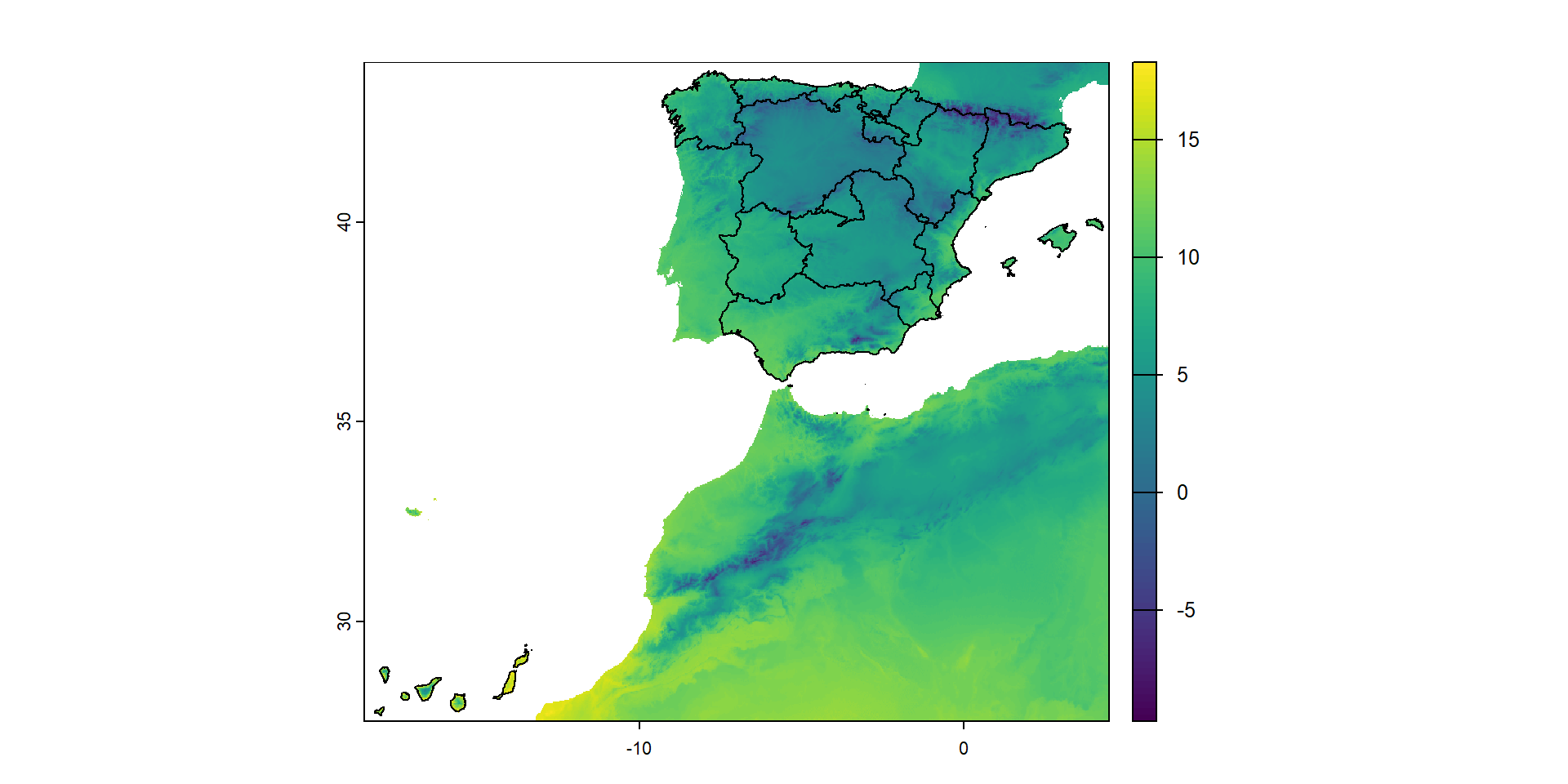 extent : -18.16153, 4.328195, 27.63736, 43.79153 (xmin, xmax, ymin, ymax)