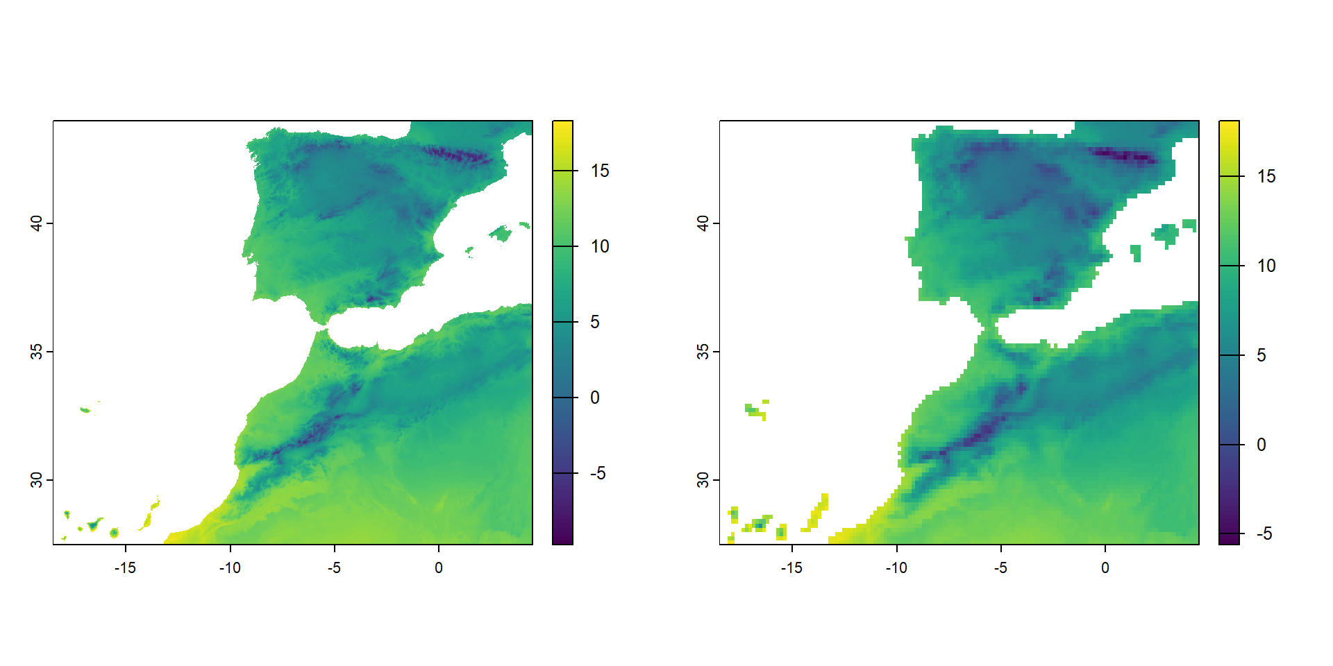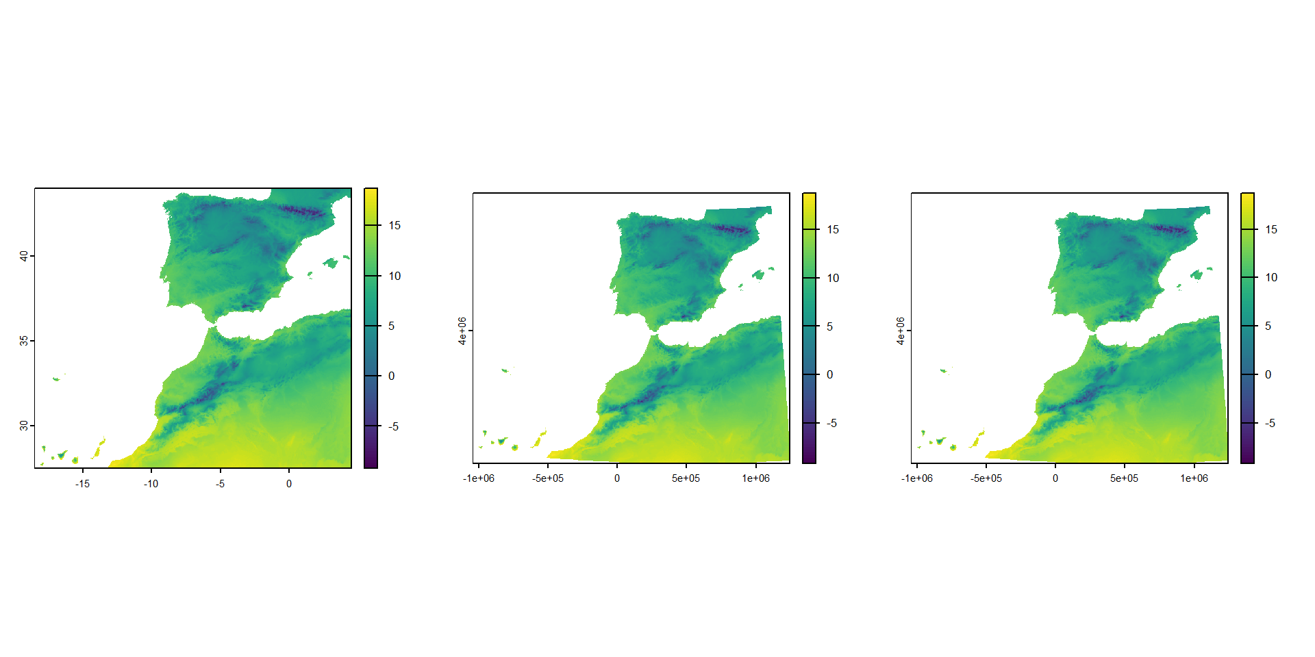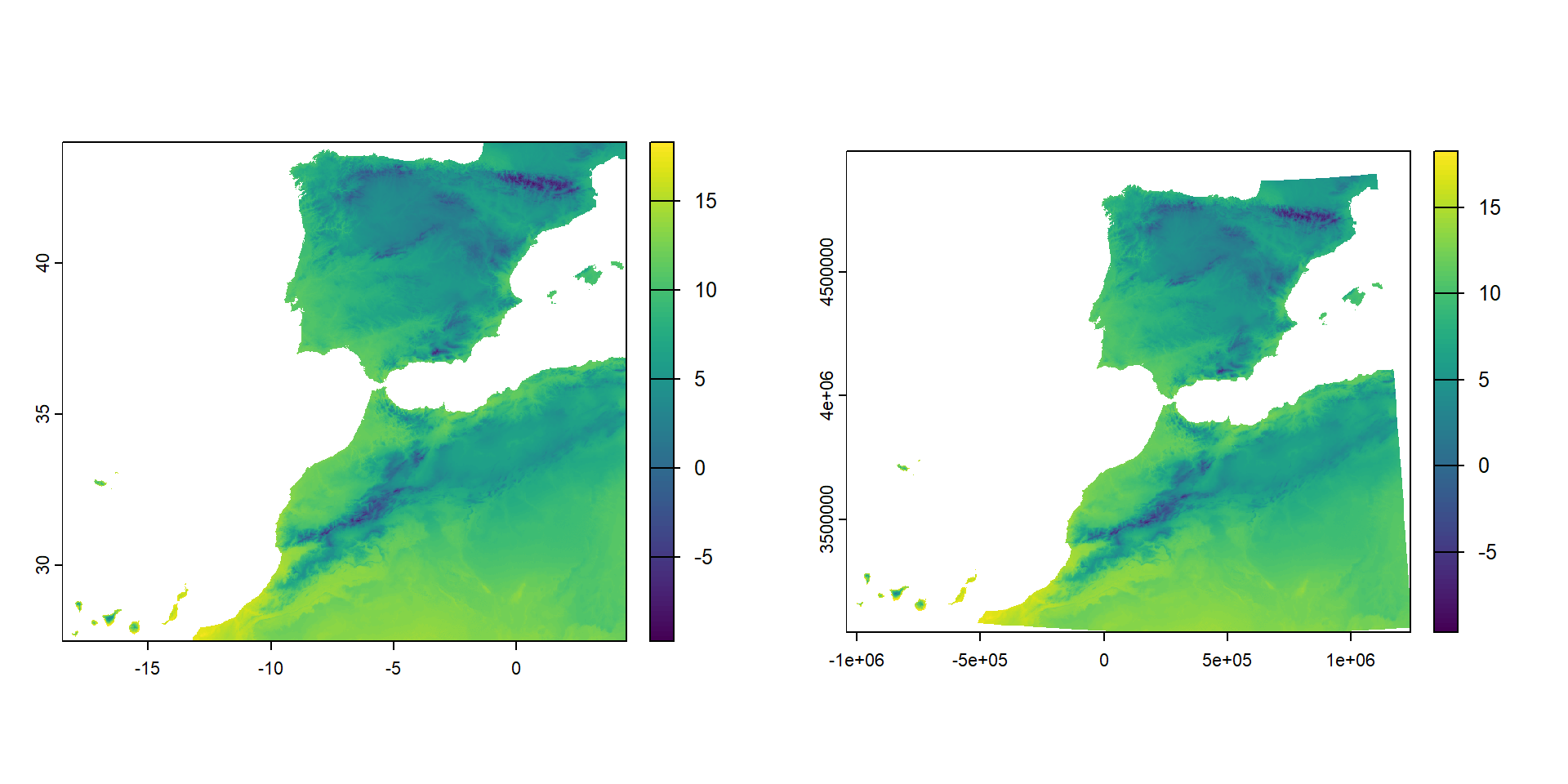 extent : -18.16153, 4.328195, 27.63736, 43.79153 (xmin, xmax, ymin, ymax)