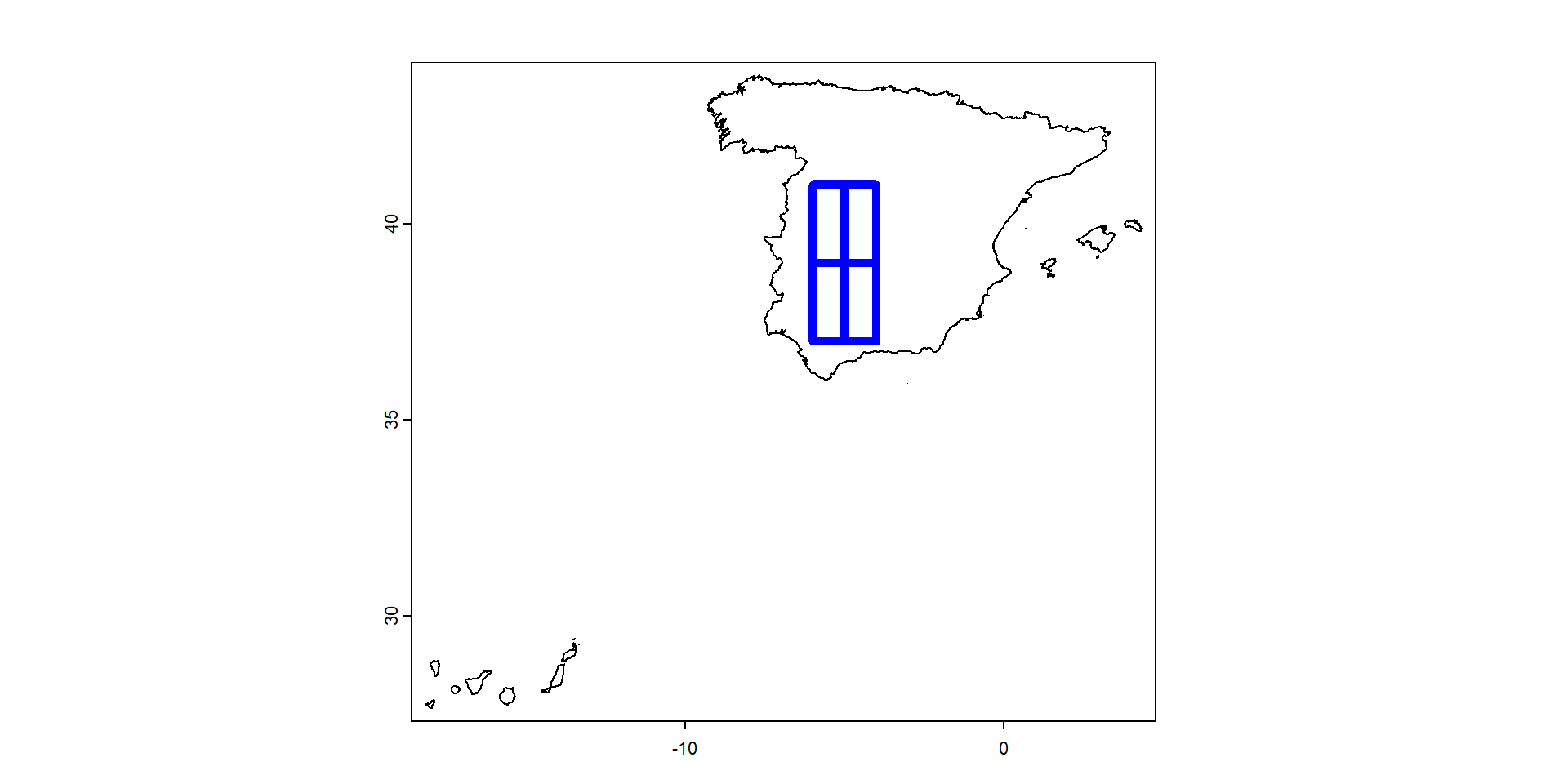 extent : -6, -4, 37, 41 (xmin, xmax, ymin, ymax)